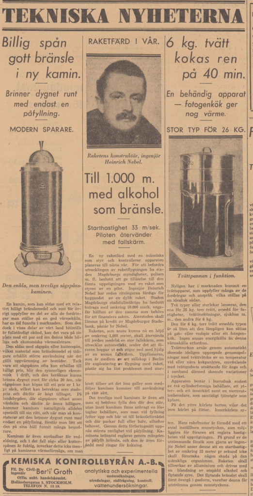 Rudolf Nebel ville flyga ut i rymden med egenkonstruerad raket i januari 1933