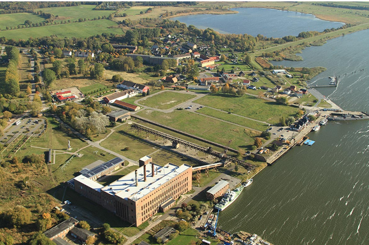 En översikt med värmeverket i Peenemünde i frögrunden, modern tid.