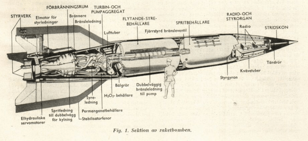 Men vilken raketinformation satt C-byrån på som kunde vara av intresse ? Det framgår inte att det skulle handla om Bäckebobomben. I Teknisk Tidskrift 5 augusti och 16 december 1944 finns detaljerad beskrivning av V1 i översättning från engelska, där V1 även kallas för spökflygplanet från Bornholm. Och i Teknisk Tidskrift 17 februari 1945 finns en genomgång av V2, mitt under den period när Tyskland öser iväg raketer. Text och bilder handlar inte om Bäckebobomben.