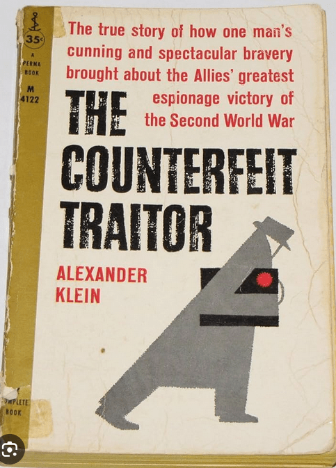 Senare på 50-talet skulle författaren Alexander Klein ge sig på ämnet att skriva en mer regelrätt roman om Eric Erickson med titeln The counterfeit traitor (1958). Här får mästerspionen själv chansen att påverka innehållet. Flera avgörande händelser är tolkade till huvudpersonens fördel eller är helt uppdiktade. Eric Erickson gillar boken och anser att den till 85 procent är sann.