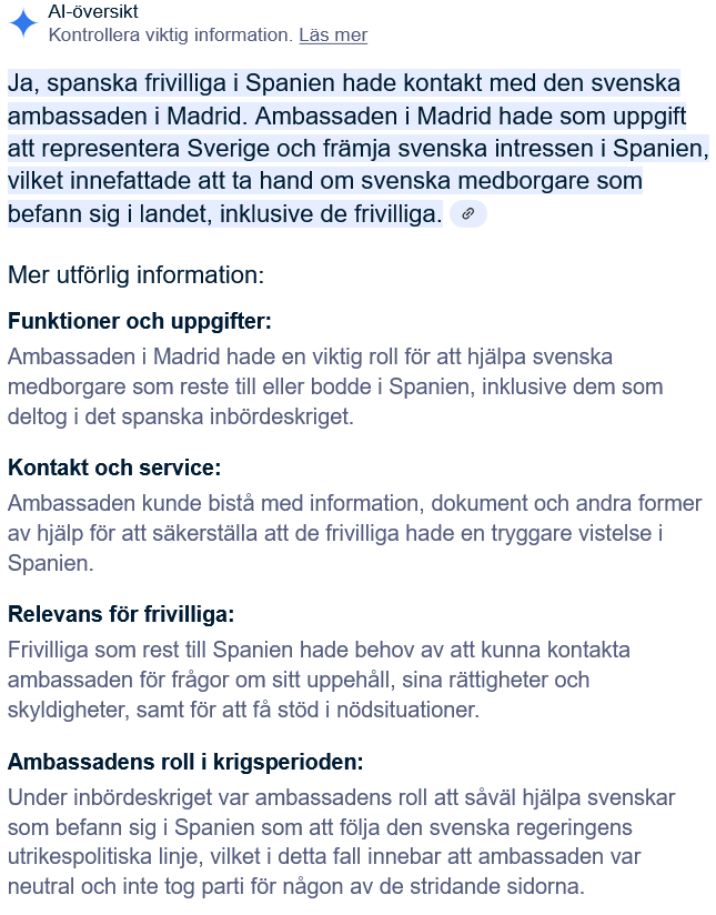 Man kan anta att de 600 svenska frivilliga som valde att delta i de internationella brigaderna under spanska inbördeskriget inte hade så stort intresse att meddela sig med den svenska ambassaden. De flesta hade anlänt till Spanien på illegala vägar, och hemma väntade flera månaders fängelsestraff (vilket inte realiserades). Men Sverige var också skyddsmakt för ett antal andra länder i Spanien. Detta gällde Tyskland, men formellt ska detta bara ha varit fallet mellan 1939 och 1945. Det finns därför ett agerande från Carl Ivan Danielsson som ser tveksamt ut.