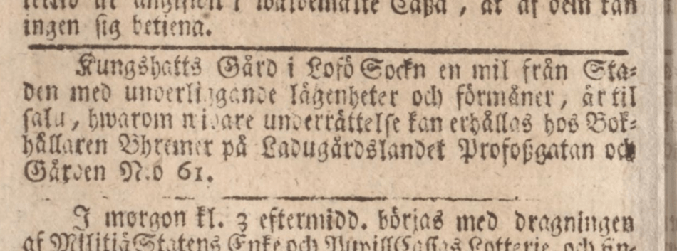 En gång bar det sig inte bättre än att man fick gräddkannan stulen ”Den 28 dennes bortstals vid munkbron, ur en mjölkbåt från Kungshatt en ny kopparpannsflaska med grädde. Den som upptäcker tjuven erhåller vedergällning då anmälan görs i bagarboden vid Munkbrotorget.