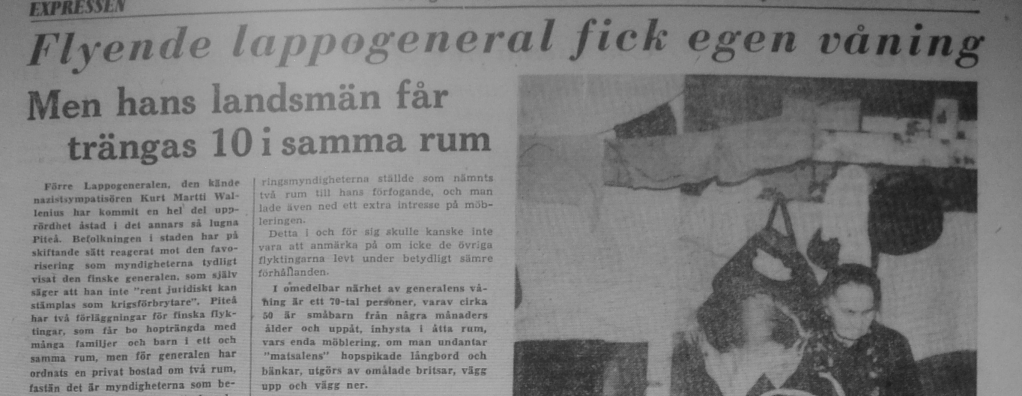 Under Lapplandskriget tvingades befolkningen fly till Sverige och togs emot i Tornedalen och andra platser i Norrbotten. Men det var inte bara de som fått sina hus bombade eller nerbrända som tog sig till Sverige. Den tidigare generalen Kurt Martti Wallenius hamnade i Piteå och togs emot betydligt bättre än sina landsmän. Detsamma gäller skeppsredaren Ragnar Nordström som tillbringade tre år