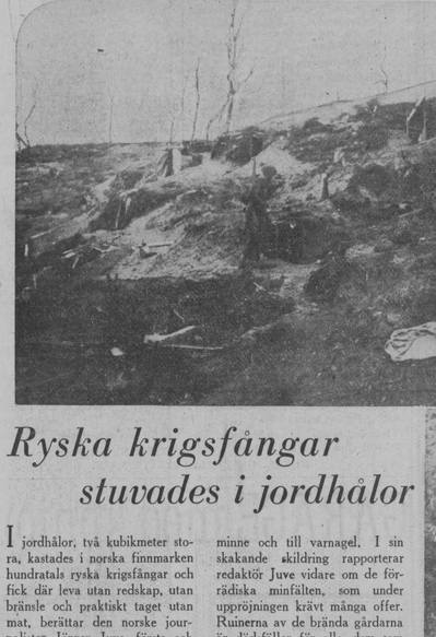 Hur de ryska krigsfångarna hade behandlats i kriget på Nordkalotten var inte okänt ( här ett tidigt reportage från norska Finnmark ) men förblev undertryckt i många decennier.