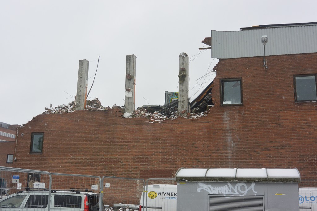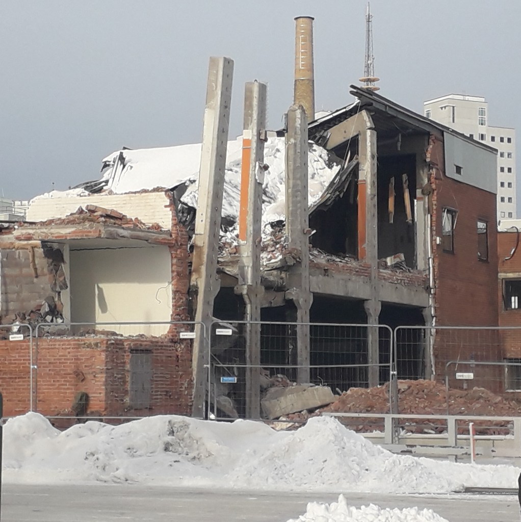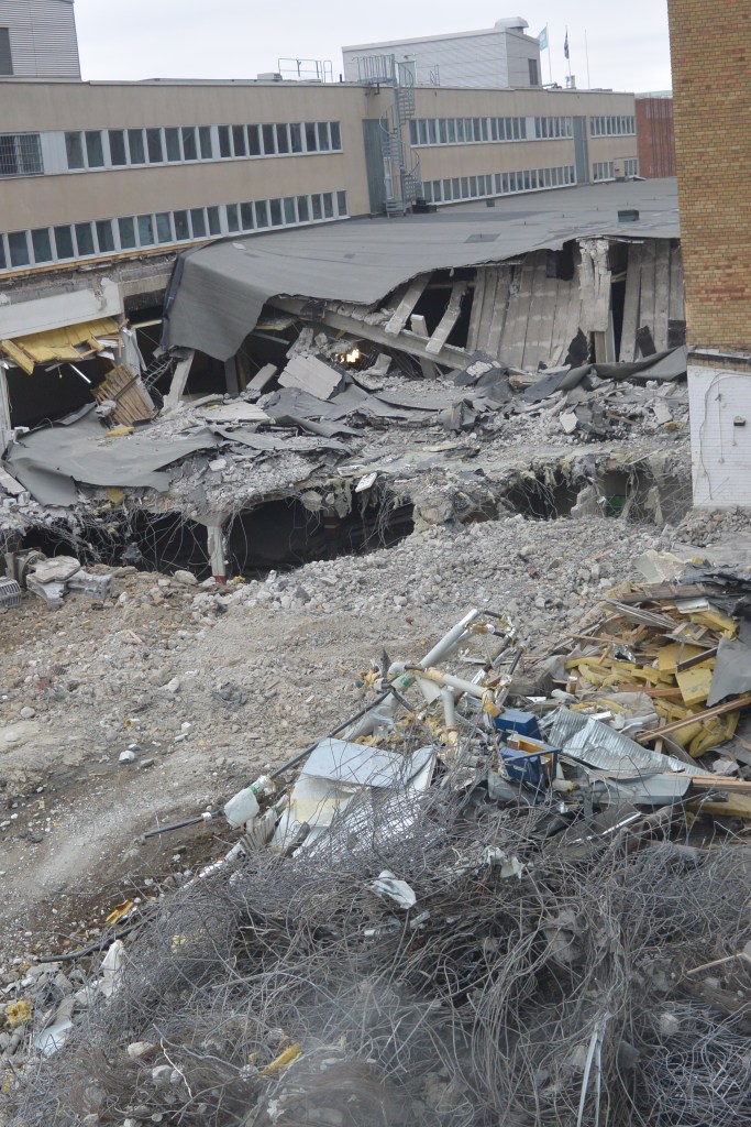 Det här är lite bilder från omvandlingen av slakthusområdet. Ett axplock från vandringar genom området. Den blivande stadsdelen har inte fått något bra namn ännu – slaktis är det som låter mest tillgängligt i munnen men är lite för vardagligt. Fler rivningsbilder finns med tidigare årgångar som kanske läggs in när jag får tid och lust. Någon mer redigering än årtal blir det inte.
