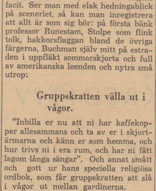 Att citera Sven Stolpe är något grannlaga. Henrik Bachner hittade följande i Oxfordisternas egen skrift ”Nytt liv” nr 9 1940 när han skrev ”Återkomsten -antisemitism i Sverige efter 1945”.