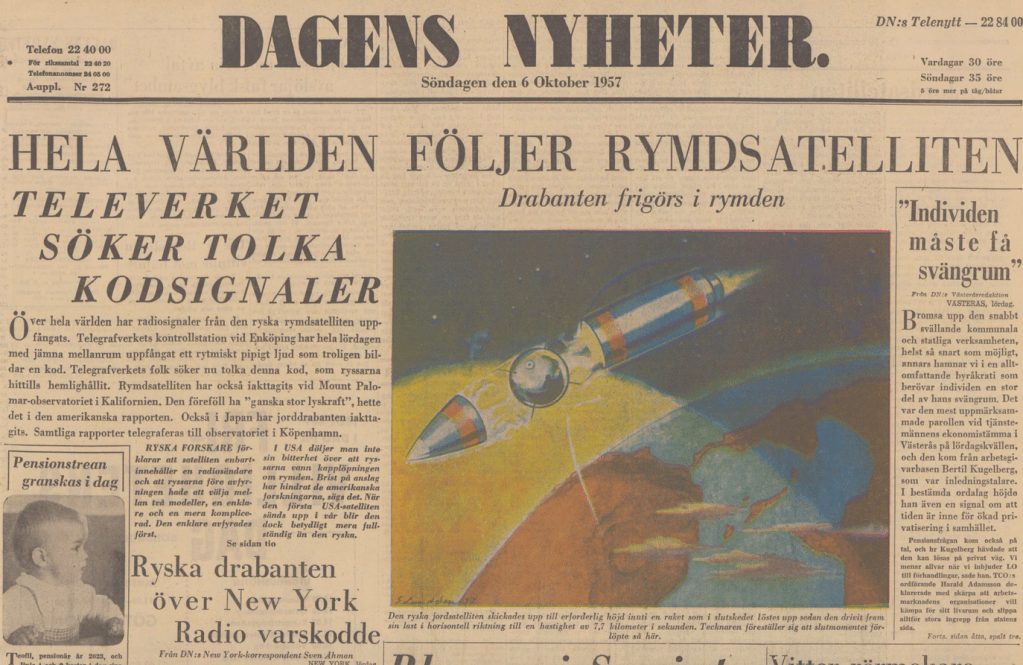 Det är annars 1957 som är det märkesåret i rymdkapplöpningen. Man befarar att Sovjetunionen ska ta ledningen och USA och väst ska hamna på efterkälken. DN:s korrespondent i USA, Sven Åhman, rapporterar skilda meningar om det är klokt att blanda samman satellitprogrammet och ansträngningarna att få fram ett fjärrvapen. Det är Marindepartementet som klagar, medan Wernher von Braun (som ju är militärforskare i grunden) får stöd av Armésidan som betonar behovet av att skapa en raket med mycket större kraft.