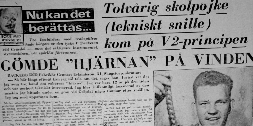 En extra poäng är väl att man på muséet, som fick överta pjäsen från polisens hittegodsmagasin snart kunde konstatera att den hade en högst intressant teknisk förhistoria: skrotklotet som studenterna fått tag på är i själva verket en av de syrebehållare som användes vid de första svenska raketexperimenten1945. Så sällsamt kan också de döda tekniska tingens historia slingra sig…
